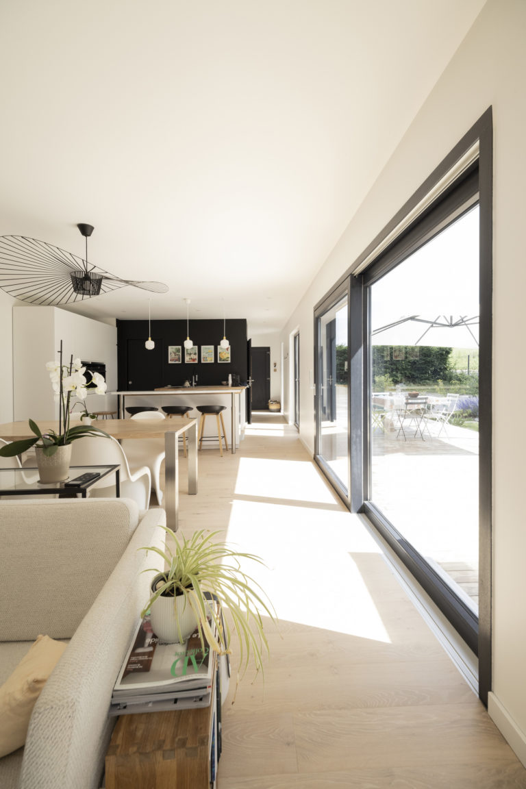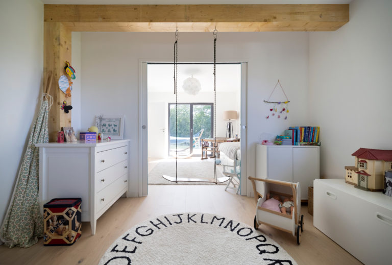 “Des amis à nous ont construit une maison booa, et nous la trouvions très agréable à vivre, c’est pour cela que nous nous sommes tournés vers l’agence d’Annecy. Nous cherchions à construire une maison modulaire à ossature bois pour le confort thermique. En effet avec maisons booa nous avons pu complètement penser les plans intérieurs, et eu la liberté de pouvoir construire la maison que nous souhaitions. Notre booa est en longueur et de plain-pied. Nous l’avons pensé en enfilade avec des portes à galandage dans les chambres des enfants pour offrir un espace de jeu très confortable. En plus, nous avons prévu un renforcement de la structure, pour pouvoir plus tard, créer un étage. Tout a été adapté, au niveau du soubassement pour l’escalier mais également au niveau de la toiture pour que cela soit possible. Une modularité sans limite !” Aurélie.